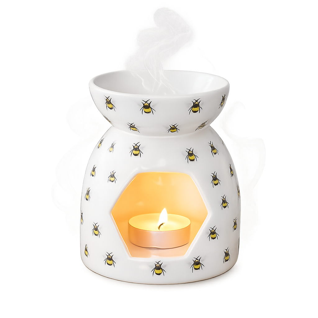 A stunning centrepiece featuring a timeless design adorned with enchanting bumble bees. This warmer adds a playful yet refined accent to your dĂ©cor while gently releasing your favourite wax melts or fragrance oils – perfect for creating a cosy, uplifting atmosphere.